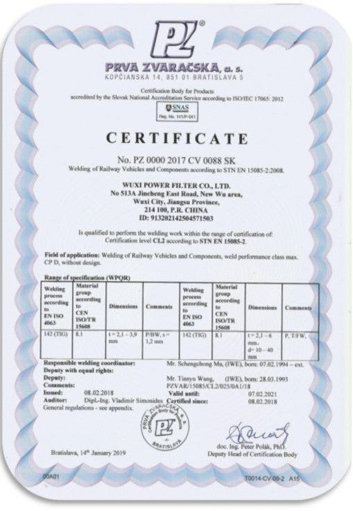全面貫徹實施ISO9001質量管理體系和STNEN15085-2國際焊接體系認證,公司通過建立一系列的質量目標,構成目標體系,并根據實際情況的變化,改進質量目標要求值,在《質量手冊》的指導下,制定一系列控制程序。